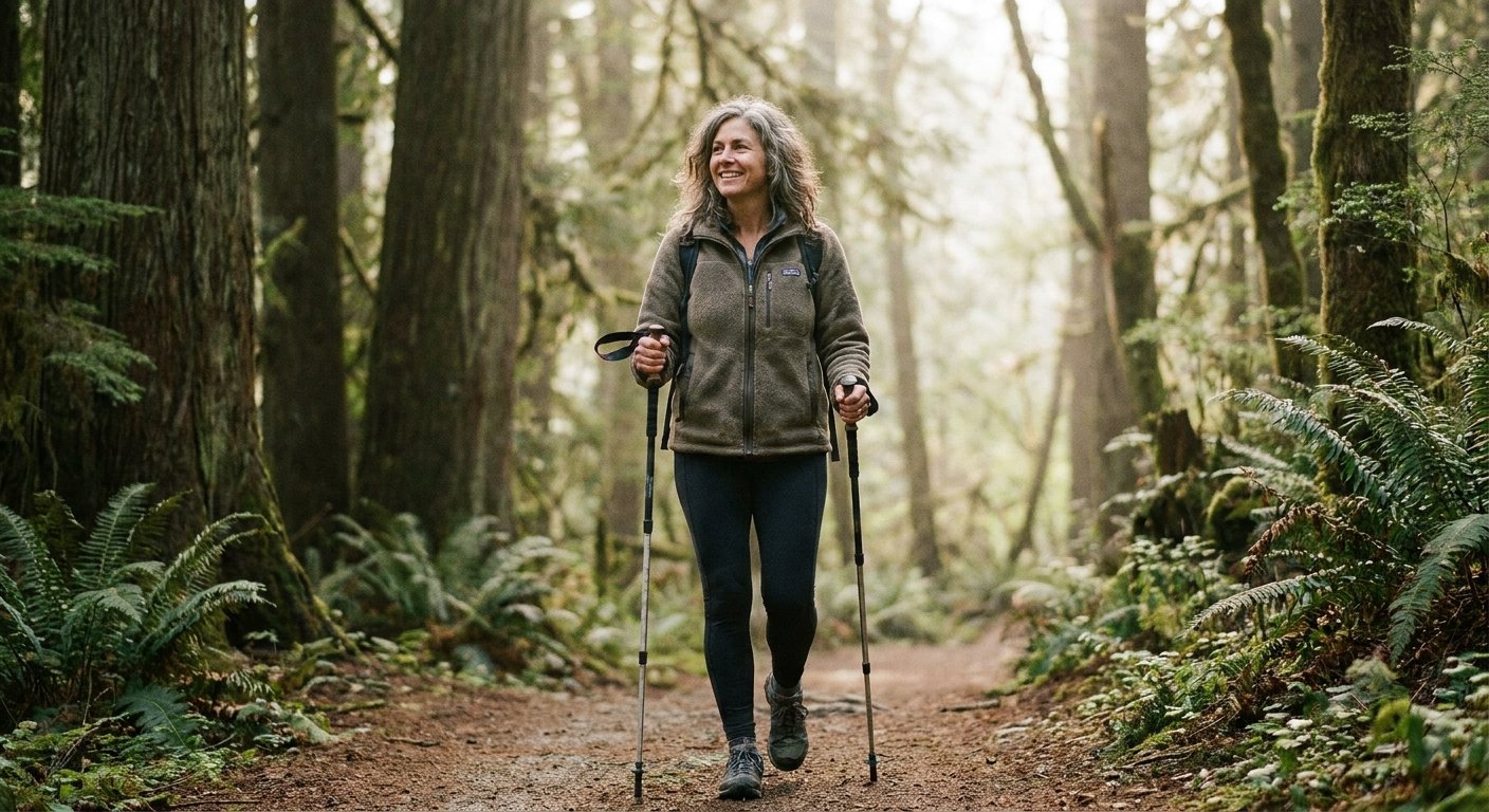 La marche nordique n'exige pas d'être en forme pour commencer. C'est précisément ce qui en fait une entrée accessible en période de transition hormonale.